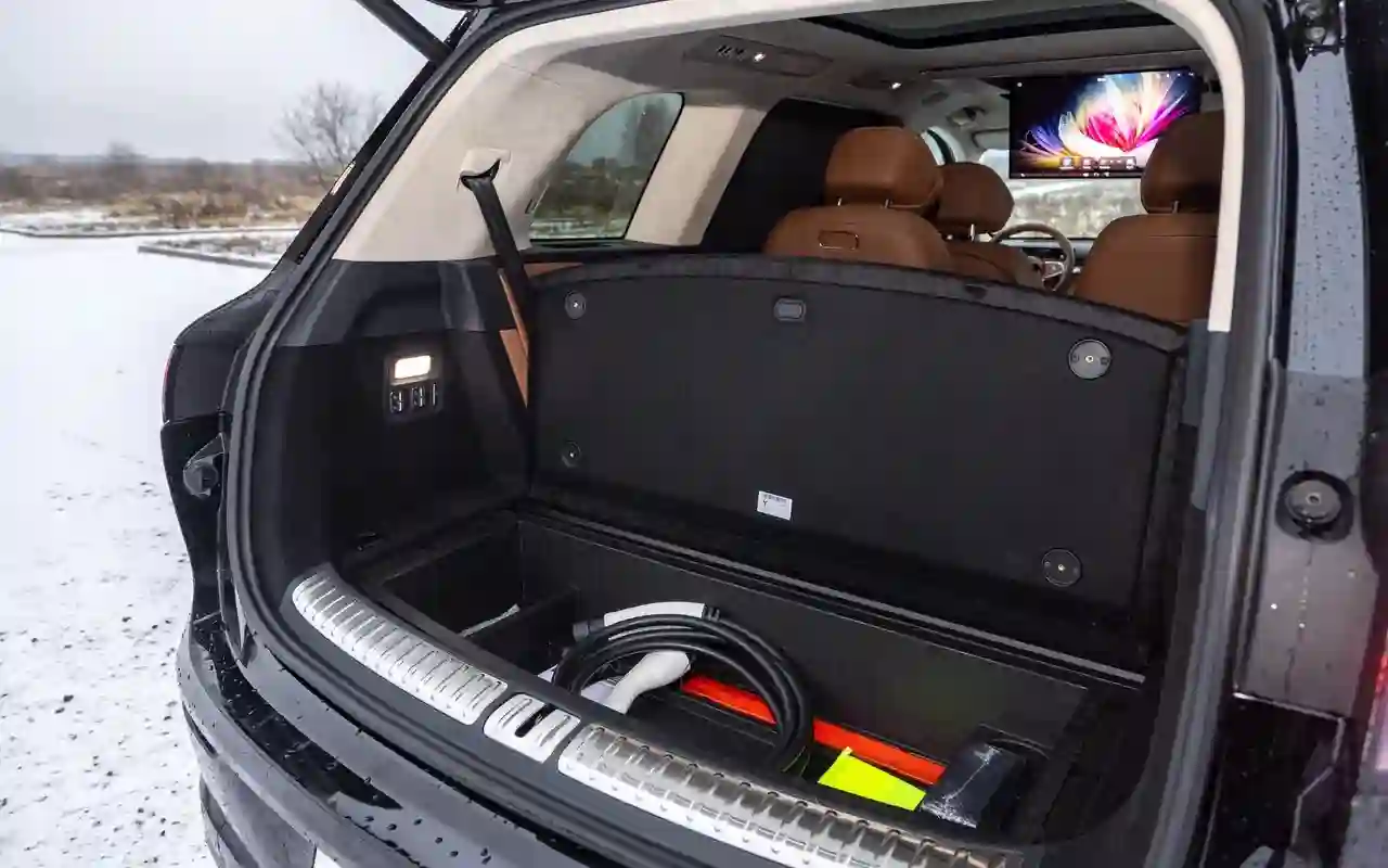 1,5-литровому 150-сильному турбомотору под капотом VOYAH TAISHAN приходится трудиться много, ведь на чистом электричестве эта машина может проезжать всего до 280 км. На деле скромного движка хватает и на помощь двум электрическим моторам (по одному на каждой оси), и на подпитку батареи прямо на ходу.